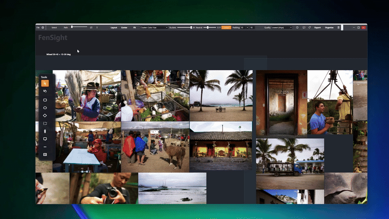 Drag drop, tag and utilize quick cluster visual grouping for all visual filetypes. Batch rename, move, copy or right click the item on the board to get the same file system operations backed by AI search.
